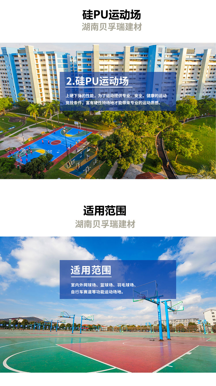 ②、超強(qiáng)的耐磨性:硅PU面層采用添加硅樹脂顆粒做法,其結(jié)構(gòu)特征恒久穩(wěn)定不變,軟硬適中,耐磨性能滿足長期高使用頻率的需要。